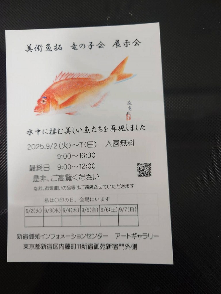~東京教室会員の皆さんによる新宿御苑アートギャラリーでのカラー魚拓展開催中~